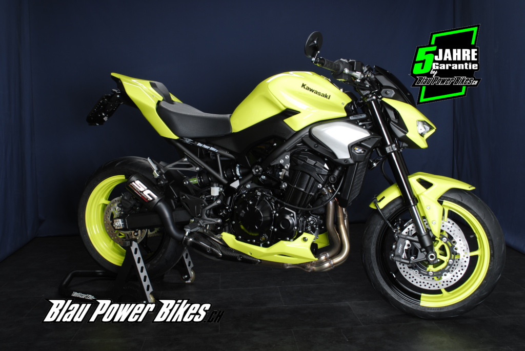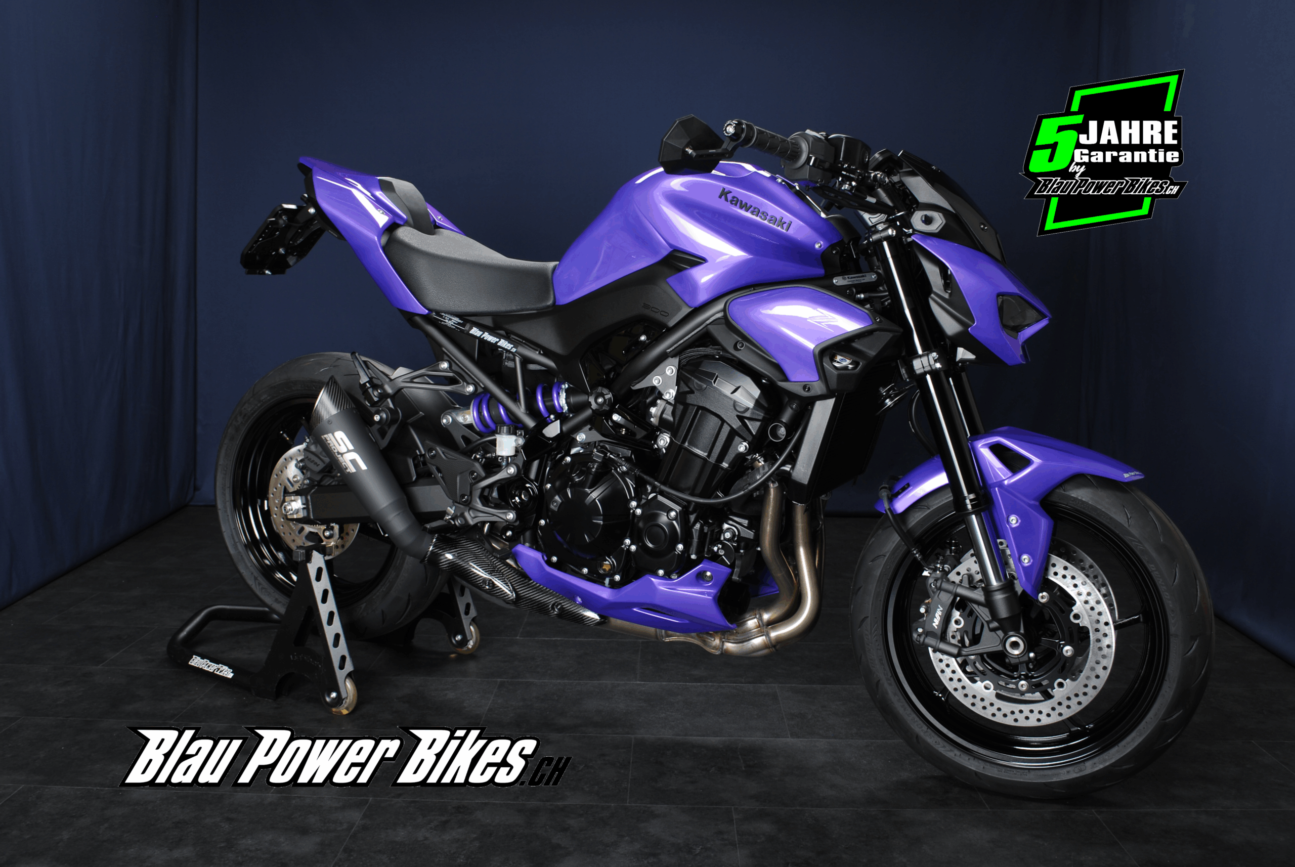 Die brandneue Z900 evolutioniert die Sugomi-Philisophie. Mit ihrem markanten, aggressiven Sugomi-Design, ihrer erstklassigen Ausstattung und der geballten Power des 948-cm³-Motors setzt die Z900 ein Statement auf jeder Strasse. Serienmässig ausgestattet mit Quickshifter + Tempomat.