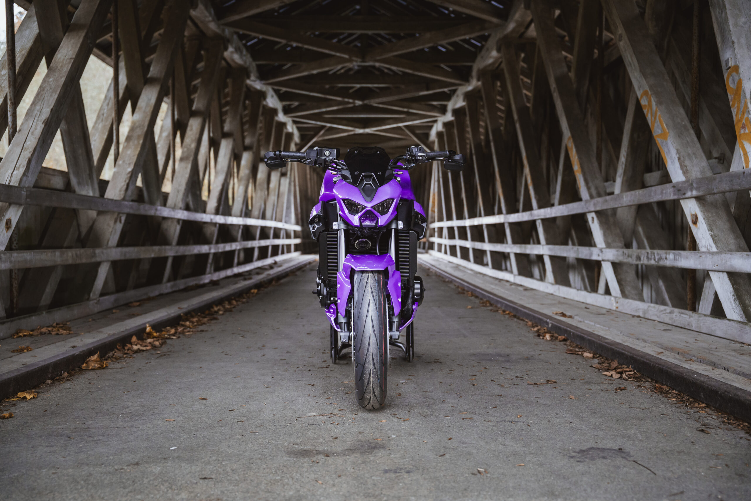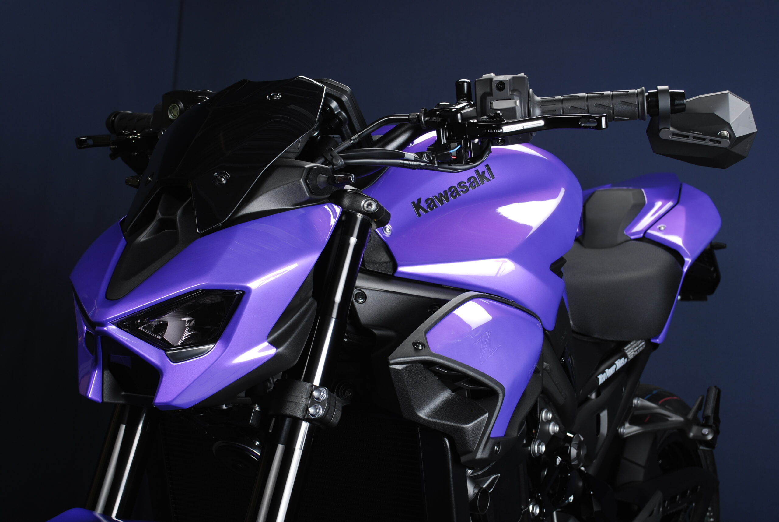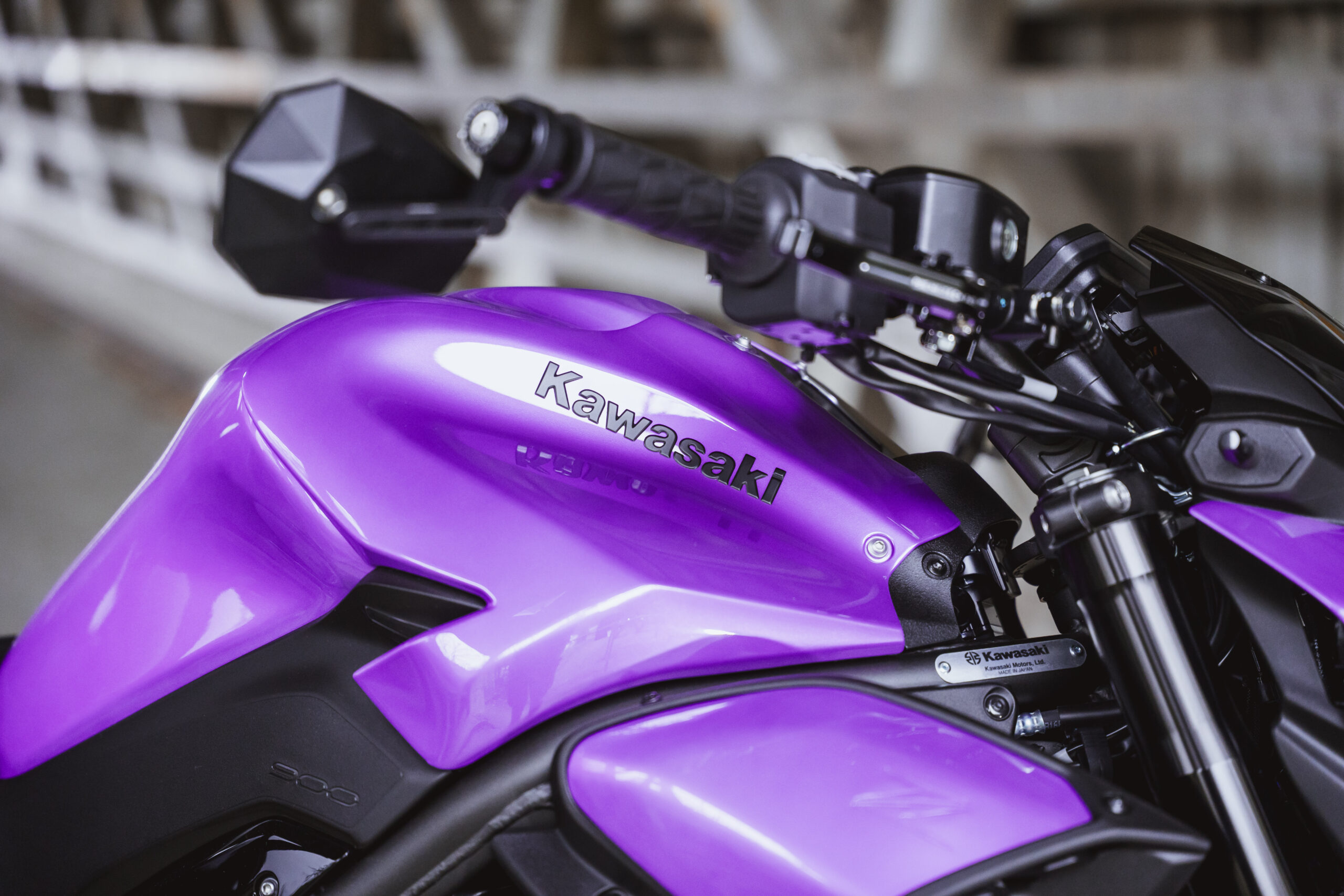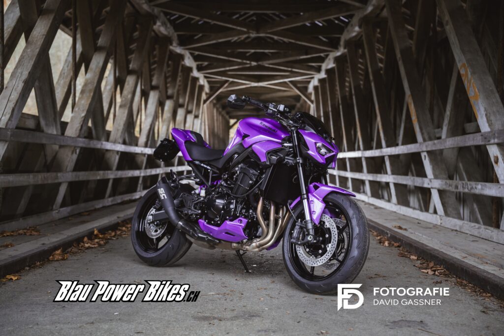 Die etwas andere Z650… mit auffälliger Sonderlackierung und candy violettem Rahmen sticht die Z650 sofort ins Auge!Bei diesem Motorrad haben wir folgende Umbauten gemacht: